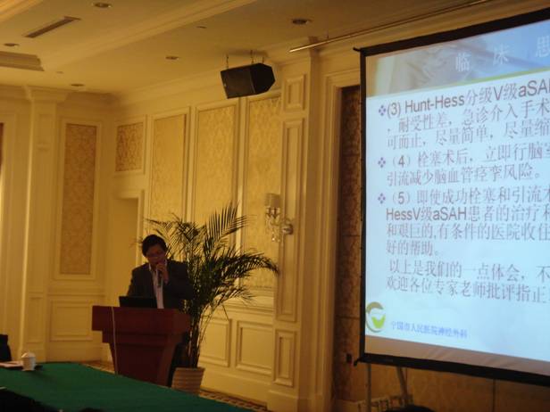 日前,神經(jīng)外科成功救治一名顱內(nèi)動(dòng)脈瘤二次破裂后深昏迷患者,患者恢復(fù)良好,現(xiàn)已順利出院。患者,李某,女,42歲,因“突然意識(shí)喪失1小時(shí)” 入院。入院神志昏睡狀態(tài),頭顱CT提示蛛網(wǎng)膜下腔出血,考慮顱內(nèi)動(dòng)脈瘤破裂。兩小時(shí)后患者突然出現(xiàn)意識(shí)障礙加重,雙側(cè)瞳孔散大,深昏迷狀態(tài),考慮為顱內(nèi)動(dòng)脈瘤再次破裂,病情極其危重,經(jīng)與家屬充分溝通后,于當(dāng)日急診行DSA全腦血管造影。術(shù)中見(jiàn)基底動(dòng)脈頂端動(dòng)脈瘤,大小約1.25*1.0cm,隨即在全麻下急診行基底動(dòng)脈頂端動(dòng)脈瘤栓塞術(shù),術(shù)后放入重癥監(jiān)護(hù)室,經(jīng)過(guò)長(zhǎng)期艱苦積極搶救治療,患者康復(fù)情況良好,順利出院。術(shù)后近兩月隨訪,患者現(xiàn)情況良好。 自發(fā)性蛛網(wǎng)膜下腔出血(SAH)中,70-80%為顱內(nèi)動(dòng)脈瘤破裂。動(dòng)脈瘤再次破裂患者死亡率高達(dá)60%,其中尤以Hunt—Hess分級(jí)V級(jí)患者病情極其危重,死亡率可高達(dá)71%-90% ,即使存活,多為持續(xù)植物生存狀態(tài)或留有嚴(yán)重后遺癥。 ? 胡曙輝副主任醫(yī)師代表我院在第六屆蘇皖腦血管疾病介入治療會(huì)議上作交流發(fā)言 ? |
