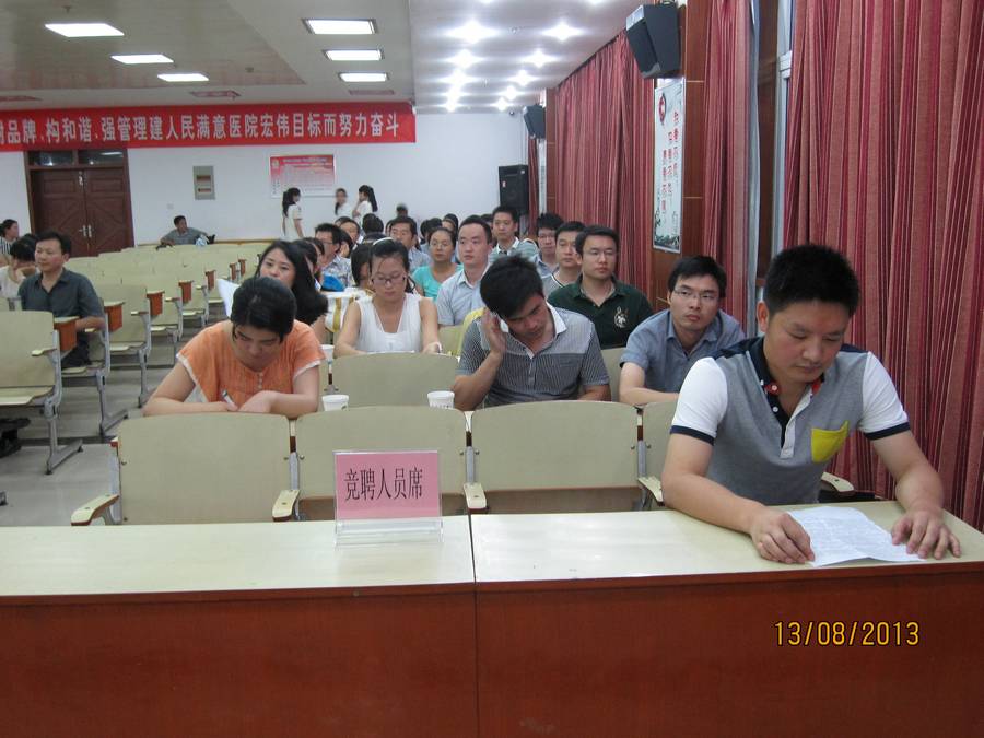 八月十三日,我院組織召開了衛(wèi)生專業(yè)技術(shù)人員中級職稱競聘會(huì)。競聘會(huì)由文春霞副院長主持,醫(yī)院本著“全面衡量、公開、公平、公正、競爭擇優(yōu)聘任”原則開展競聘工作,成立了領(lǐng)導(dǎo)測評組和群眾測評組兩個(gè)測評組,對34名競聘人員就個(gè)人演講、德能勤績、管理能力三個(gè)方面進(jìn)行全面測評考核。競聘會(huì)由競聘者進(jìn)行述職報(bào)告,測評組進(jìn)行測評打分,并對參評人員的成績進(jìn)行公示。本次中級職稱公開競聘工作進(jìn)一步優(yōu)化了我院衛(wèi)生專業(yè)技術(shù)人員結(jié)構(gòu)比例,提高了人才隊(duì)伍質(zhì)量,提升了服務(wù)能力和服務(wù)水平。 |