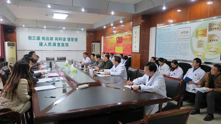 ? ??? ? 2016年1月12日,宣城市醫(yī)改和醫(yī)院綜合督查組來我院開展全市深化醫(yī)改和醫(yī)院綜合督查工作,程朝暉院長、汪書斌副書記、楊武副院長及相關(guān)科室負(fù)責(zé)人參加接待。 ? ? 程朝暉院長代表我院對檢查組一行的到來表示熱烈歡迎,就我院分級診療、臨床路徑、預(yù)約診療、臨床用血管理、醫(yī)療質(zhì)量和安全管理等醫(yī)改工作落實及綜合管理情況進(jìn)行詳細(xì)介紹。 ? ? 此次檢查對我院提高整體醫(yī)療質(zhì)量、保障醫(yī)療安全、改善醫(yī)療服務(wù)起有效推進(jìn)作用,確保各項工作得到持續(xù)改進(jìn)。 |