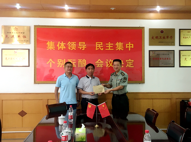 ![]() ![]() ? 7月26日,“八一”建軍節(jié)前夕,市醫(yī)院汪書斌副書記、楊武副院長、院辦馬世忠主任一行來到東部戰(zhàn)區(qū)駐宣部隊,共敘魚水深情,共話雙擁發(fā)展。 ? 自2012年起,為保障官兵的身心健康及應對突發(fā)事件,市醫(yī)院與該部隊簽約,指定市醫(yī)院做為社會化保障定點醫(yī)療機構(gòu),多年來,雙方密切聯(lián)系,結(jié)合自身特點,因地制宜地開展各項共建活動。 ? 慰問組一行認真聽取部隊官兵介紹軍改后部隊建設(shè)發(fā)展情況,并對他們在維護地方和平穩(wěn)定中作出的工作表示感謝,醫(yī)院作為寧國市“雙擁合格單位”,一定會結(jié)合醫(yī)院自身特色,更好的為部隊官兵做好醫(yī)療服務(wù),推進雙擁共建工作再上新臺階!