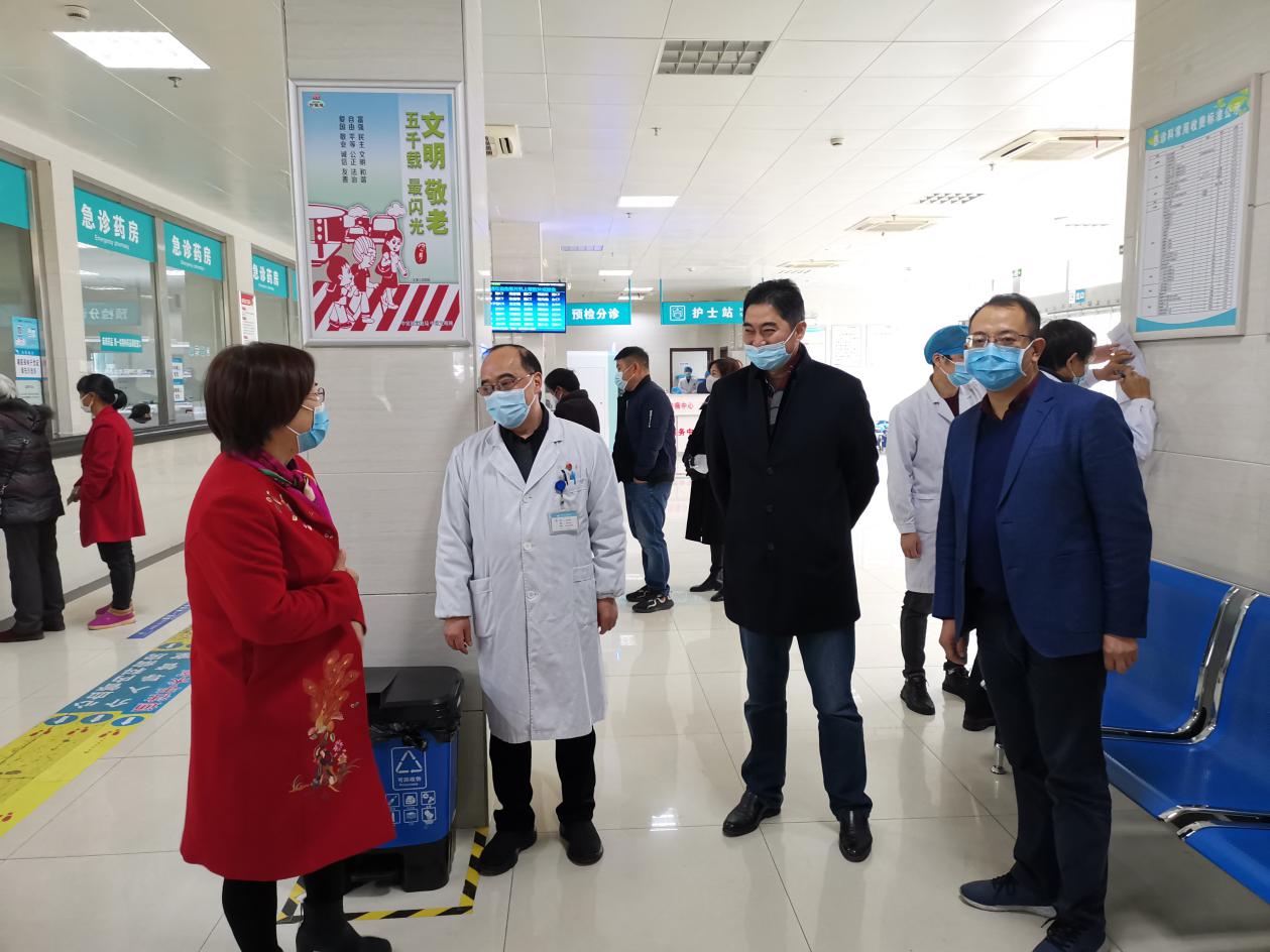 檢查組對(duì)西區(qū)CT室進(jìn)行督查指導(dǎo) 隨后,檢查組專家一行來到我院本部,現(xiàn)場(chǎng)查看呼吸科門診、急診、外一科病區(qū)、醫(yī)廢暫存點(diǎn),對(duì)門急診和預(yù)檢分診的環(huán)境布局、工作流程、防護(hù)物資配置和措施落實(shí)等方面進(jìn)行了督查并詢問。