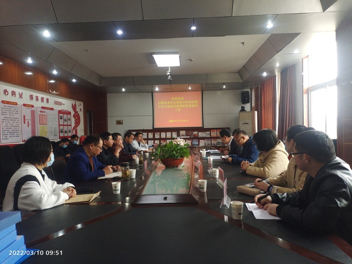 3月10日,安徽省衛(wèi)健委老年友善醫(yī)療機構(gòu)創(chuàng)建現(xiàn)場評估專家組一行6人來我院開展評估和督查工作,宣城市衛(wèi)健委分管領(lǐng)導(dǎo)、寧國市衛(wèi)健委分管領(lǐng)導(dǎo)、我院院長凌峰、副院長王慧華以及相關(guān)職能部門負(fù)責(zé)人參加了會議。