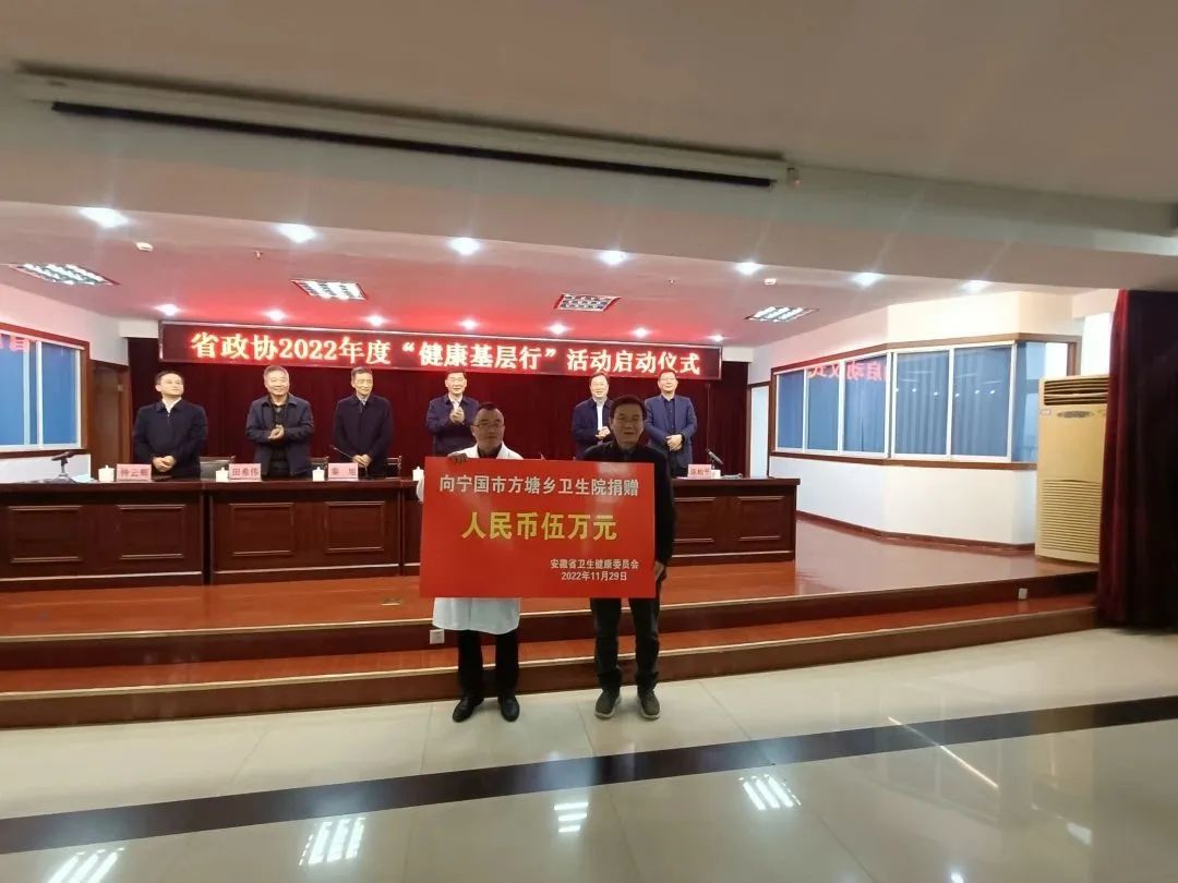市政協(xié)黨組書記、主席陳柏平指出,本次活動表達了省相關(guān)領(lǐng)導(dǎo)和專家對我市衛(wèi)生健康事業(yè)的關(guān)懷,各部門要以此次活動為契機,深入學習貫徹黨的二十大精神,在健康中國戰(zhàn)略引領(lǐng)下,砥礪奮進、開拓創(chuàng)新,奮力推進我市衛(wèi)生健康和體育事業(yè)高質(zhì)量發(fā)展。 隨后舉行捐贈儀式,為寧國市方塘鄉(xiāng)衛(wèi)生院捐贈了5萬元醫(yī)療經(jīng)費,向市人民醫(yī)院和梅林鎮(zhèn)捐贈了藥品和健身器材。