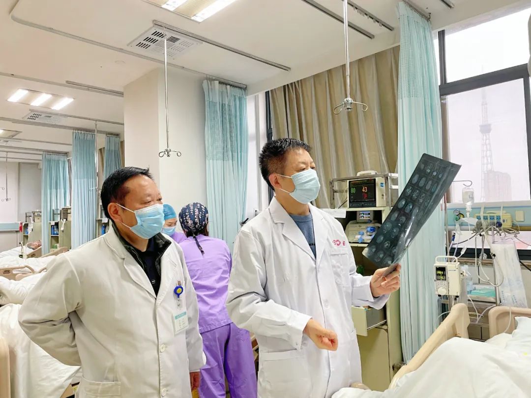 省政協(xié)常委,安徽醫(yī)科大學第一附屬醫(yī)院,腦膠質(zhì)瘤治療中心主任、神經(jīng)外科主任醫(yī)師、教授,安徽省“江淮名醫(yī)”徐培坤在神經(jīng)外科重癥室內(nèi)查房。