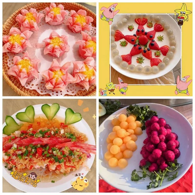 各式各樣的果盤,紅的綠的黃的~名字也是充滿寓意,有“聚寶盆”、“年年有魚”“龍行龘龘”、“蒸蒸日上”…… 這一道道考驗精心、細心、耐心、慧心的工序絲毫難不倒“女廚神”們,在她們的纖纖巧手下,一個個清香縈繞的菜品猶如春天的天使般靈動地呈現(xiàn)在評委和觀眾面前。大賽開始30分鐘以后,一道道色香味俱全的參賽菜品陸續(xù)登場,引得現(xiàn)場圍觀隊員爭相拍照! 此次廚藝大賽參與度高、趣味性強,充分展現(xiàn)了寧醫(yī)"她力量”在生活中的另一種風采,進一步增強了團隊凝聚力更是提升員工滿意度,增強員工幸福感和歸屬感?;顒又兴宫F(xiàn)的積極向上、和諧歡快的文化氛圍,正是醫(yī)院文化建設(shè)不可或缺的重要基石。"天使美廚”們紛紛表示,將繼續(xù)以“巾幗不讓須眉”之勢,以高度的責任心和精湛的業(yè)務(wù)能力,為寧醫(yī)高質(zhì)量發(fā)展新征程而努力奮斗。 |
