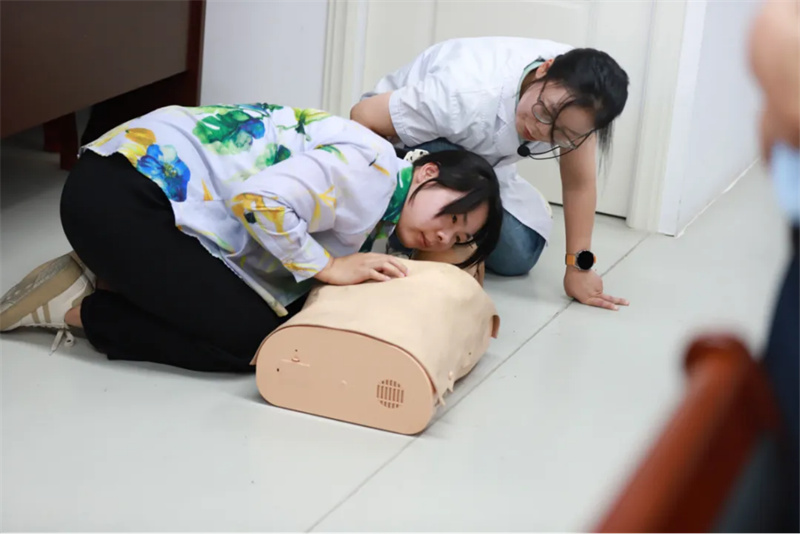 心肺復(fù)蘇實(shí)踐操作 安徽省健康巡講專家,兒科主管護(hù)士徐寅,為學(xué)校的老師們進(jìn)行了一場(chǎng)關(guān)于兒童心肺復(fù)蘇術(shù)的科普講座。講座分為急救知識(shí)講解和操作技能演示兩項(xiàng)。徐寅專家深入淺出地講解了心肺復(fù)蘇術(shù)的基本原理、操作技巧以及在實(shí)際應(yīng)用中的注意事項(xiàng),通過模擬演示,展示了心肺復(fù)蘇術(shù)的實(shí)際操作流程。專家手把手指導(dǎo)老師們進(jìn)行實(shí)踐操作,老師們積極參與,分組操作,反復(fù)練習(xí)技術(shù)動(dòng)作。不少老師表示,本次專題培訓(xùn)活動(dòng)非常實(shí)用和及時(shí),不僅普及了具有科學(xué)性和可操作性的急救相關(guān)知識(shí),也進(jìn)一步提高了大家處理突發(fā)事件的自救自護(hù)能力,為學(xué)生健康快樂成長(zhǎng)提供了強(qiáng)有力的保障。
