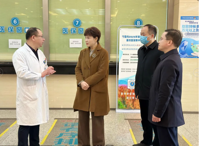 為進(jìn)一步提升醫(yī)療保障服務(wù)水平,深入了解我院醫(yī)保政策落實(shí)情況,2月27日,宣城市政協(xié)副主席、宣城市醫(yī)保局局長周小紅和宣城市醫(yī)保局黨組書記佘敦宇及黨組成員、副局長邱紅娟等一行來到我院調(diào)研,重點(diǎn)對(duì)我院一站式服務(wù)中心、普外一科進(jìn)行了實(shí)地調(diào)研。寧國市政府黨組成員、副市長鐘云輝及寧國市醫(yī)保局黨組書記、局長李軍陪同。