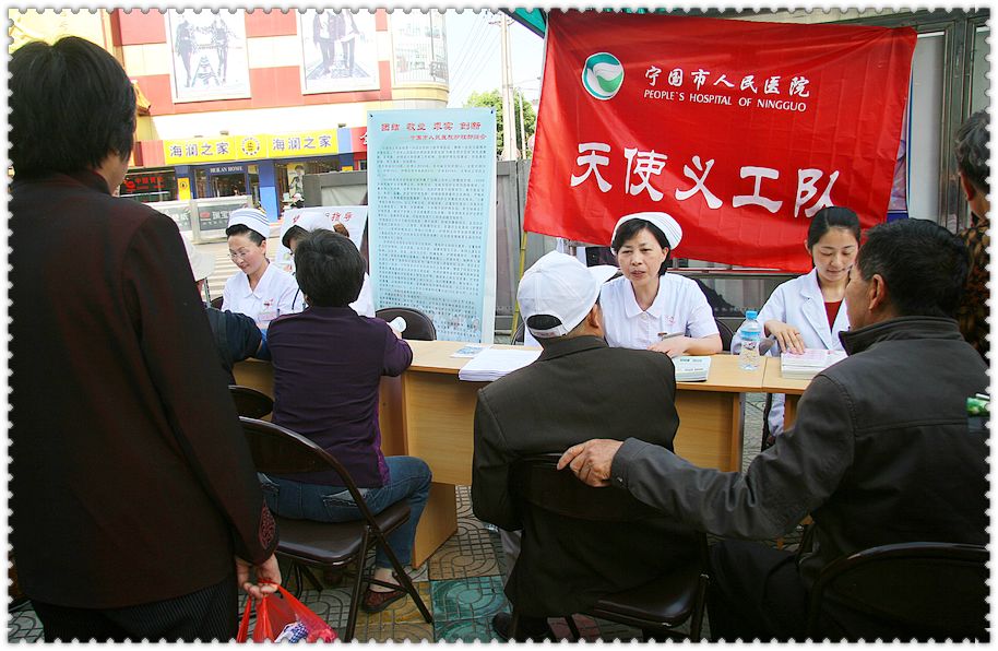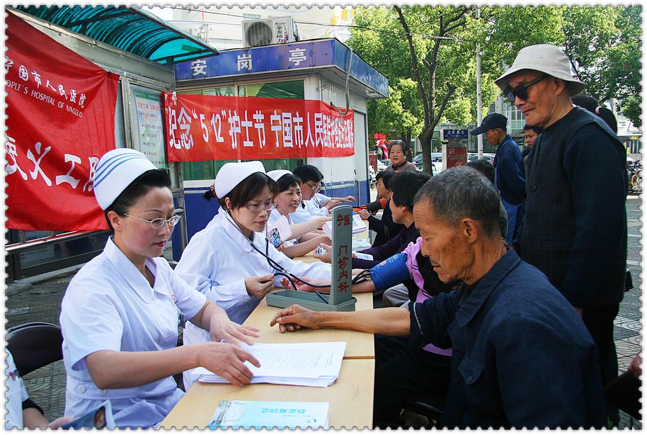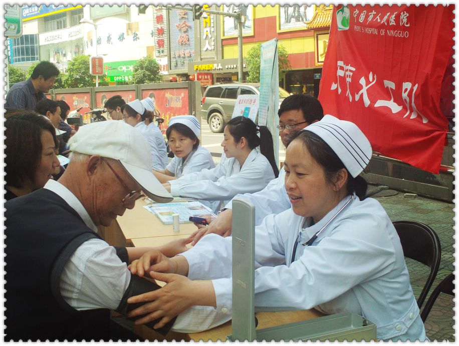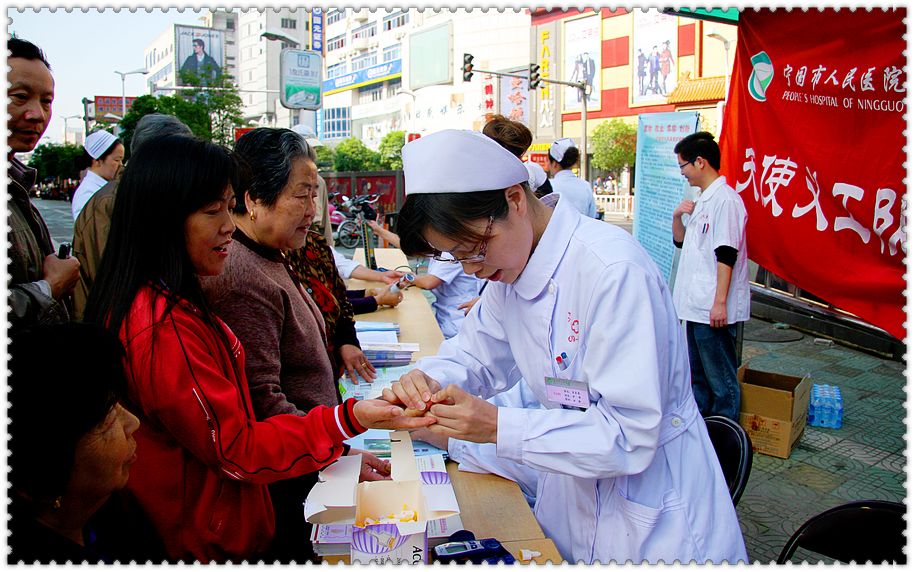 為隆重紀(jì)念“5、12”國(guó)際護(hù)士節(jié),踐行國(guó)際護(hù)士理事會(huì)2010年度“優(yōu)質(zhì)護(hù)理,服務(wù)社區(qū):護(hù)士引領(lǐng)長(zhǎng)期護(hù)理”的主題精神, 寧國(guó)市人民醫(yī)院護(hù)理部于5月11日上午組織天使義工隊(duì)開(kāi)展了“慶祝護(hù)士節(jié) 護(hù)理服務(wù)進(jìn)社區(qū)”活動(dòng),走進(jìn)城東社區(qū)為廣大市民義診,宣傳健康知識(shí),免費(fèi)測(cè)血糖、量血壓,內(nèi)分泌科周紅衛(wèi)主任、眼科趙蕾醫(yī)師、糖尿病專(zhuān)科護(hù)士胡夏云、五官科護(hù)士孟蘭花及護(hù)理部共10余人參加了此次義工活動(dòng)。上午8時(shí)許在津河商廈旁義診活動(dòng)開(kāi)始,社區(qū)居民們及市民紛至沓來(lái),在城東居委會(huì)的大力協(xié)助下,義工隊(duì)員測(cè)血糖,量血壓,發(fā)放宣傳資料,進(jìn)行健康咨詢,現(xiàn)場(chǎng)人群絡(luò)繹不絕,活動(dòng)持續(xù)約3小時(shí),共測(cè)血糖100余人,量血壓400余人,發(fā)放宣傳資料500余張,健康咨詢100余人次。此次義診不僅讓居民們?cè)鲩L(zhǎng)了健康知識(shí),也為社區(qū)居民與護(hù)士之間提供了交流的平臺(tái),受到了普遍歡迎和一致好評(píng)。< xml:namespace prefix = o ns = "urn:schemas-microsoft-com:office:office" /> 繼本次活動(dòng)后,市醫(yī)院護(hù)理部將繼續(xù)組織天使義工隊(duì)開(kāi)展護(hù)理進(jìn)社區(qū)活動(dòng),讓更多的市民了解、增長(zhǎng)自我保健常識(shí),從而提高生活質(zhì)量。 |