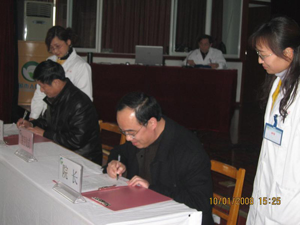 加強醫(yī)德醫(yī)風教育,預防和制止職務犯罪行為,近日,我院召開“強化醫(yī)院管理,規(guī)范行業(yè)行為”動員大會。會上,各科室主任與院長簽訂了相關(guān)責任書,全體醫(yī)護人員舉行了“強化管理、廉潔行醫(yī)”宣誓儀式,并認真聽取了由檢察院工作人員所作的預防職務犯罪專題講座。(圖為程朝暉院長與科室主任簽訂責任書場景)