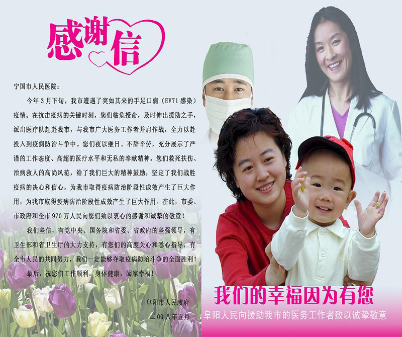 本院動(dòng)態(tài)阜陽(yáng)市人民政府向我院發(fā)來(lái)感謝信