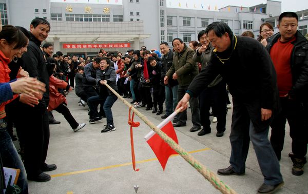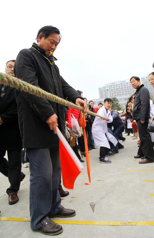 12月15日下午,由我院工會(huì)組織的拔河比賽在西區(qū)廣場(chǎng)上如火如荼的舉行。全院共分成24個(gè)代表隊(duì)參加了此次比賽,下午2點(diǎn)整,程朝暉院長(zhǎng)宣布:比賽正式開(kāi)始。在一陣陣加油聲中,每名隊(duì)員為了集體榮譽(yù)都鉚足了勁,場(chǎng)外啦啦隊(duì)吶喊聲不斷,整個(gè)賽場(chǎng)氣氛緊張而熱烈,,經(jīng)過(guò)近兩個(gè)小時(shí)的激烈比賽,最終急診科代表隊(duì)拔得頭籌,外一科、行政代表隊(duì)分獲二、三名,骨一科、手術(shù)室麻醉科ICU、外三科分列四、五、六名。本次活動(dòng)豐富了我院職工的文化生活,有力的推動(dòng)了醫(yī)院的文化建設(shè),促進(jìn)了職工之間的交流,使我們認(rèn)識(shí)到了團(tuán)隊(duì)協(xié)作的重要性,增強(qiáng)了醫(yī)院的凝聚力,為今后我院更好的開(kāi)展集體活動(dòng)做了良好的鋪墊。 |