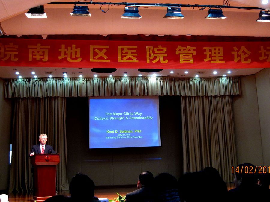 2月14日上午9點,程朝暉院長帶領我院部分領導班子成員和相關負責人參加了在弋磯山醫(yī)院舉辦的題為《美國梅奧的百年成功之路》的醫(yī)院管理講座。該講座的主講人肯特D.塞爾曼先生是原梅奧醫(yī)學中心營銷部榮譽主席,也是《向世界最好的醫(yī)院學管理》的作者。一個多小時的講座,他深入淺出的講述了自己對醫(yī)院管理學的理解,并結合美國醫(yī)院管理的實際,深入剖析了醫(yī)院管理的內(nèi)涵,不愧為“世界醫(yī)院管理的泰斗”。他所提倡的醫(yī)院管理知識值得我院借鑒和學習。 |