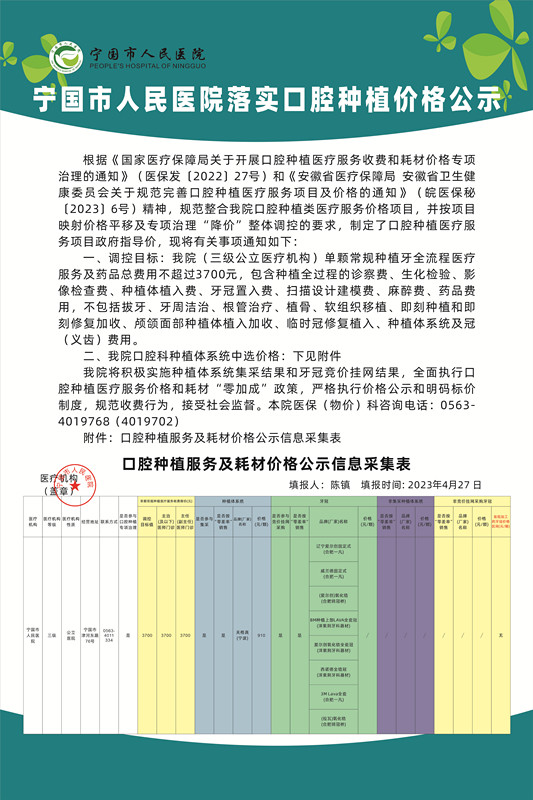院務(wù)公開(kāi)寧國(guó)市人民醫(yī)院落實(shí)口腔種植價(jià)格公示
