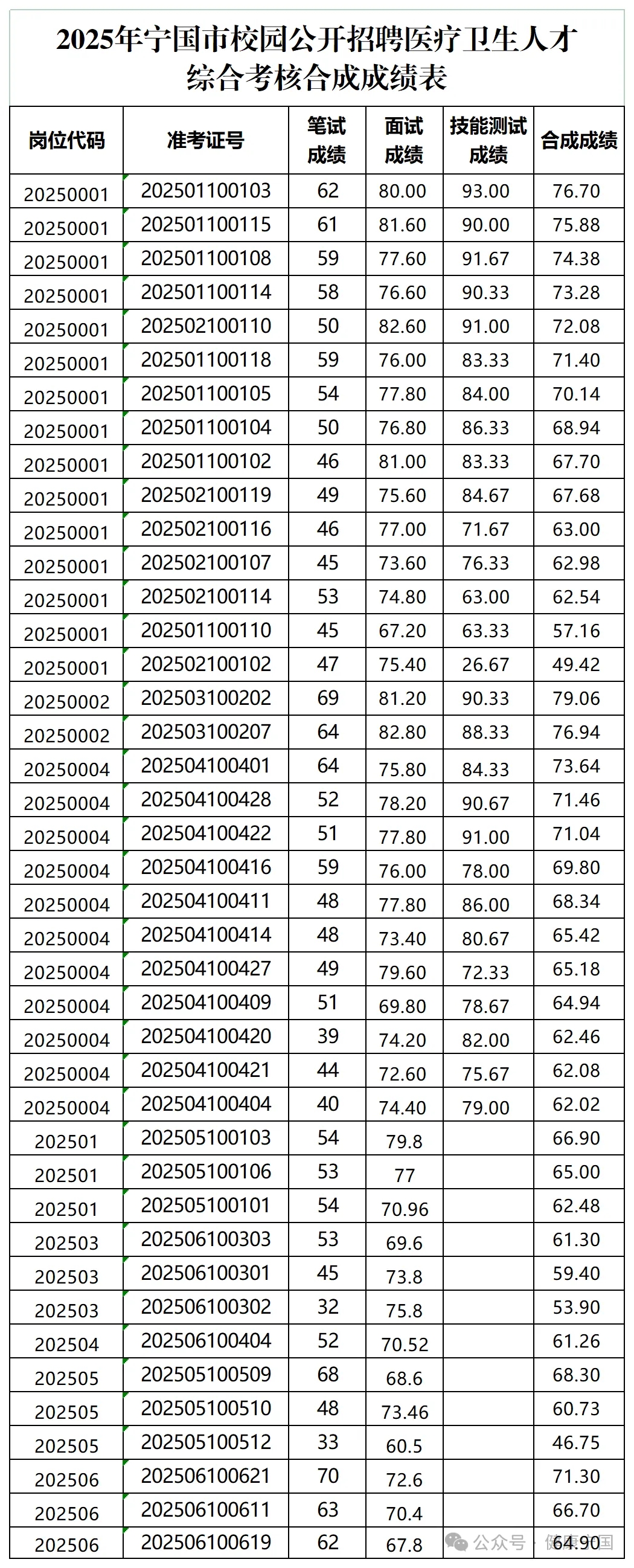 招標(biāo)采購2025年度寧國市校園公開招聘醫(yī)療衛(wèi)生人才綜合考核合成成績公布