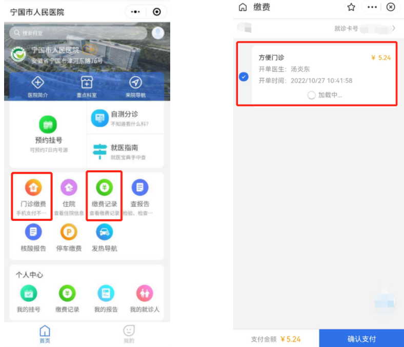 四、門診繳費在線支付 醫(yī)生開單后,在首頁點擊“門診繳費”,即可線上完成繳費,點擊“繳費記錄”可查詢繳費情況。
